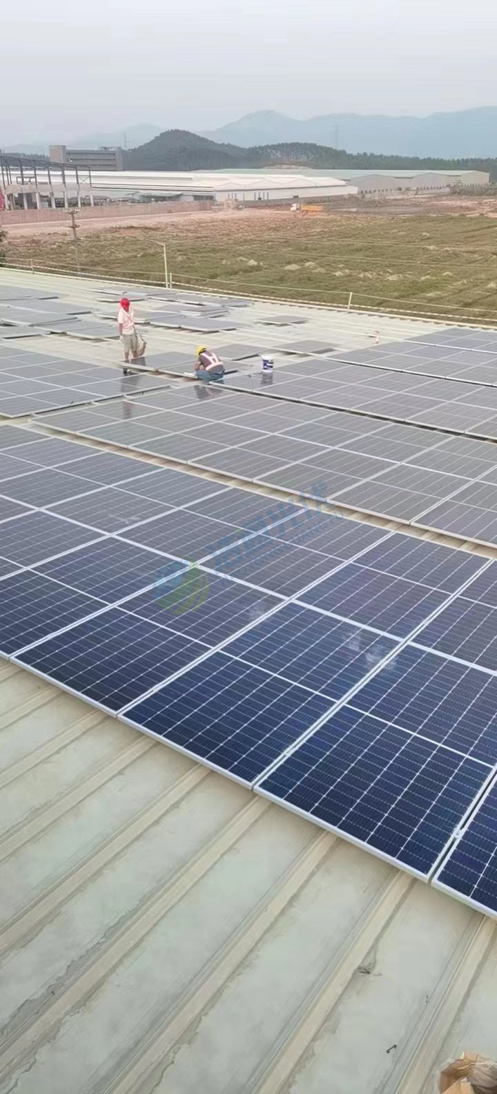 項(xiàng)目概述: 光伏綠色收益,你我一路傳遞。2022年10月10日,浩通光伏公司在鶴山市雙合鎮(zhèn)蒲塘工業(yè)開發(fā)區(qū) 新添一座式業(yè)太陽能光伏發(fā)電站,電站容量1000kw(1MW),2022年12月28日竣工并網(wǎng)驗(yàn)收,投入發(fā)電運(yùn)行,年發(fā)電量近120萬度,不僅滿足了用戶夏季的用電需求,斬獲一筆可觀的光伏綠色收益,同時(shí)為夏季的酷熱屋頂安上了一道綠色屏障——免費(fèi)而又美麗的隔熱層,為城市的環(huán)保貢獻(xiàn)了一份力量。