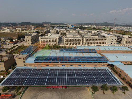 廣東施彩涂料有限公司606.96KW太陽能光伏發電宿舍樓頂安裝效果圖