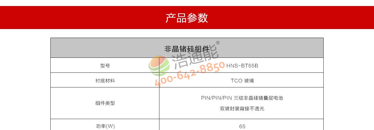規(guī)格:鉑陽薄膜太陽能HNS-BT65B